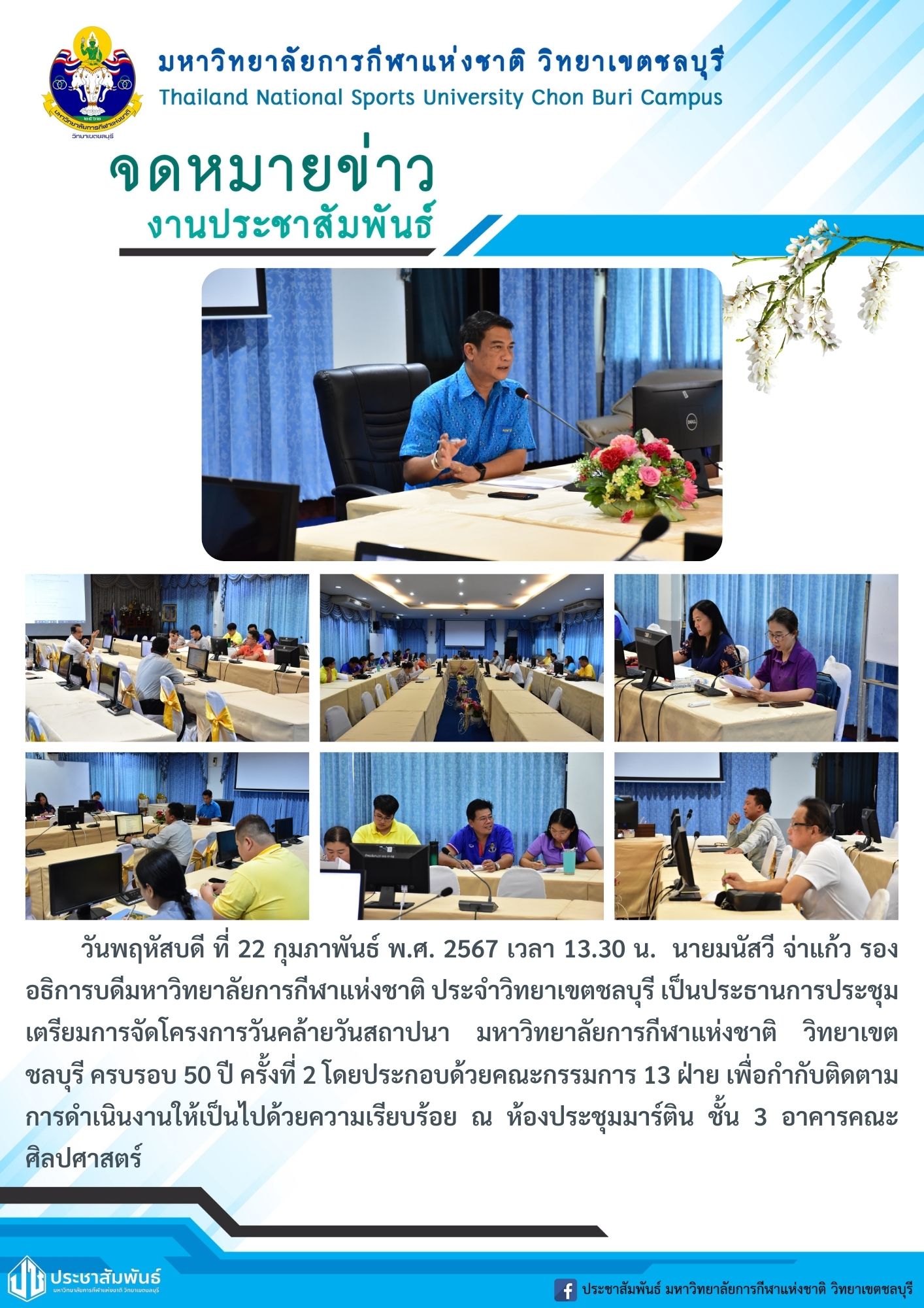 การประชุมเตรียมการ จัดโครงการวันคล้ายวันสถาปนา มหาวิทยาลัยการกีฬาแห่งชาติ วิทยาเขตชลบุรี ครบรอบ 50 ปี ครั้งที่ 2