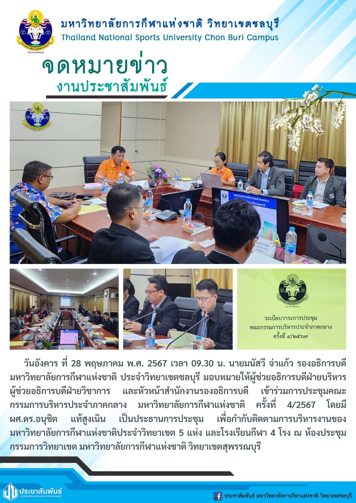 การประชุมคณะกรรมการบริหารประจำภาคกลาง มหาวิทยาลัยการกีฬาแห่งชาติ ครั้งที่ 3/2567