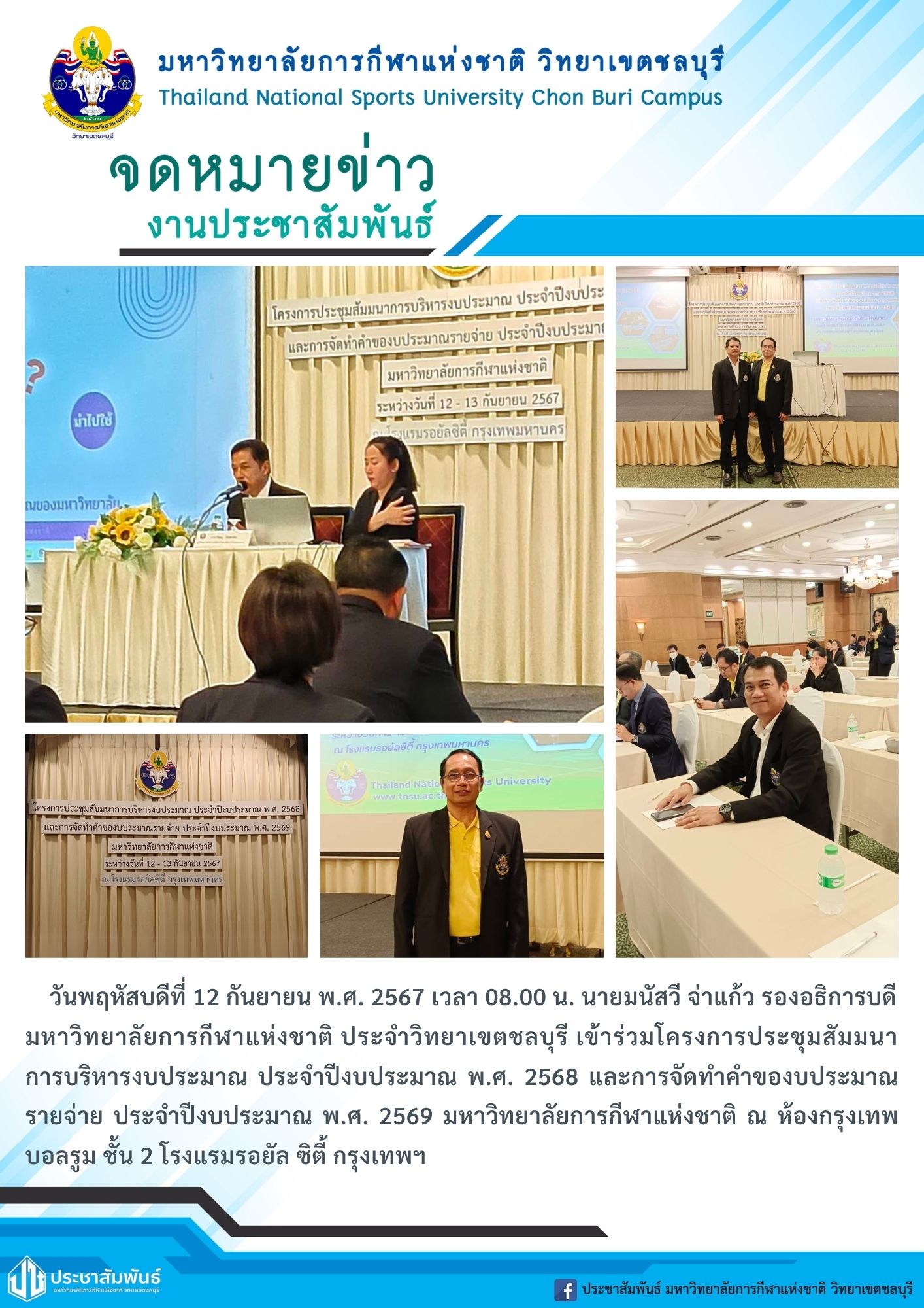 วันพฤหัสบดีที่ 12 กันยายน พ.ศ. 2567 เวลา 08.00 น. นายมนัสวี จ่าแก้ว รองอธิการบดี มหาวิทยาลัยการกีฬาแห่งชาติ ประจำวิทยาเขตชลบุรี เข้าร่วมโครงการประชุมสัมมนา การบริหารงบประมาณ ประจำปีงบประมาณ พ.ศ. 2568 และการจัดทำคำของบประมาณรายจ่าย ประจำปีงบประมาณ พ.ศ. 2569 มหาวิทยาลัยการกีฬาแห่งชาติ ณ ห้องกรุงเทพ บอลรูม ชั้น 2 โรงแรมรอยัล ซิตี้ กรุงเทพฯ.jpg)