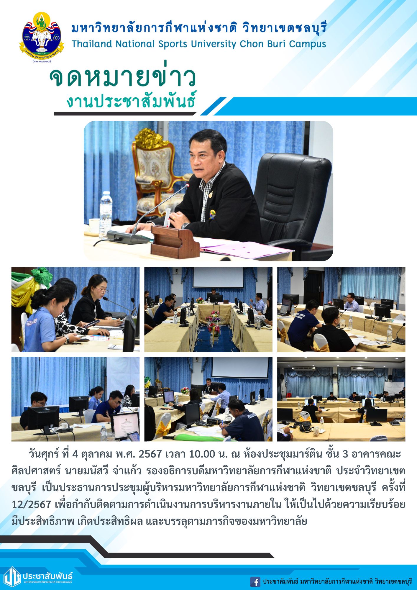การประชุมผู้บริหารมหาวิทยาลัยการกีฬาแห่งชาติ วิทยาเขตชลบุรี ครั้งที่ 12/2567