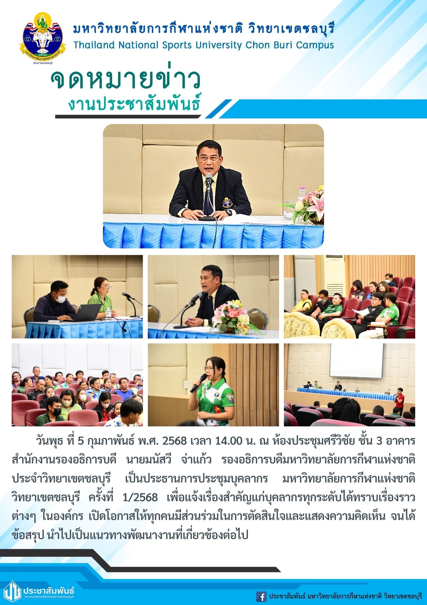 การประชุมบุคลากร มหาวิทยาลัยการกีฬาแห่งชาติ วิทยาเขตชลบุรี ครั้งที่ 1/2568
