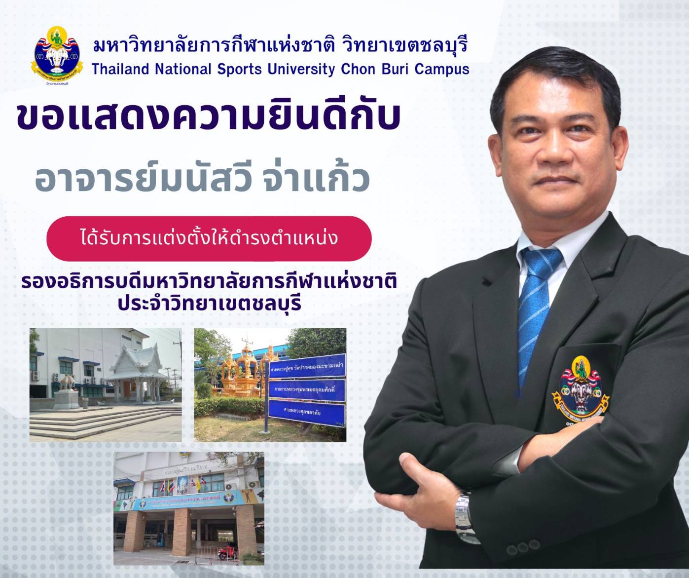 ขอแสดงความยินดีกับ อาจารย์มนัสวี จ่าแก้ว ได้รับการแต่งตั้งให้ดำรงตำแหน่ง รองอธิการบดีมหาวิทยาลัยการกีฬาแห่งชาติ ประจำวิทยาเขตชลบุรี