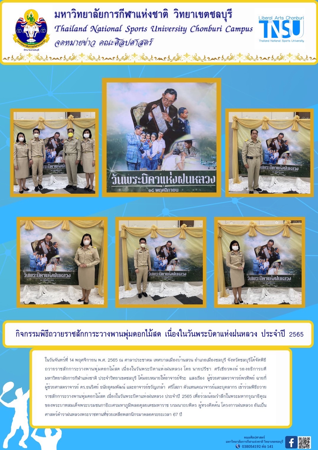 กิจกรรมพิธีถวายราชสักการะวางพานพุ่มดอกไม้สด เนื่องในวันพระบิดาแห่งฝนหลวง ประจำปี 2565
