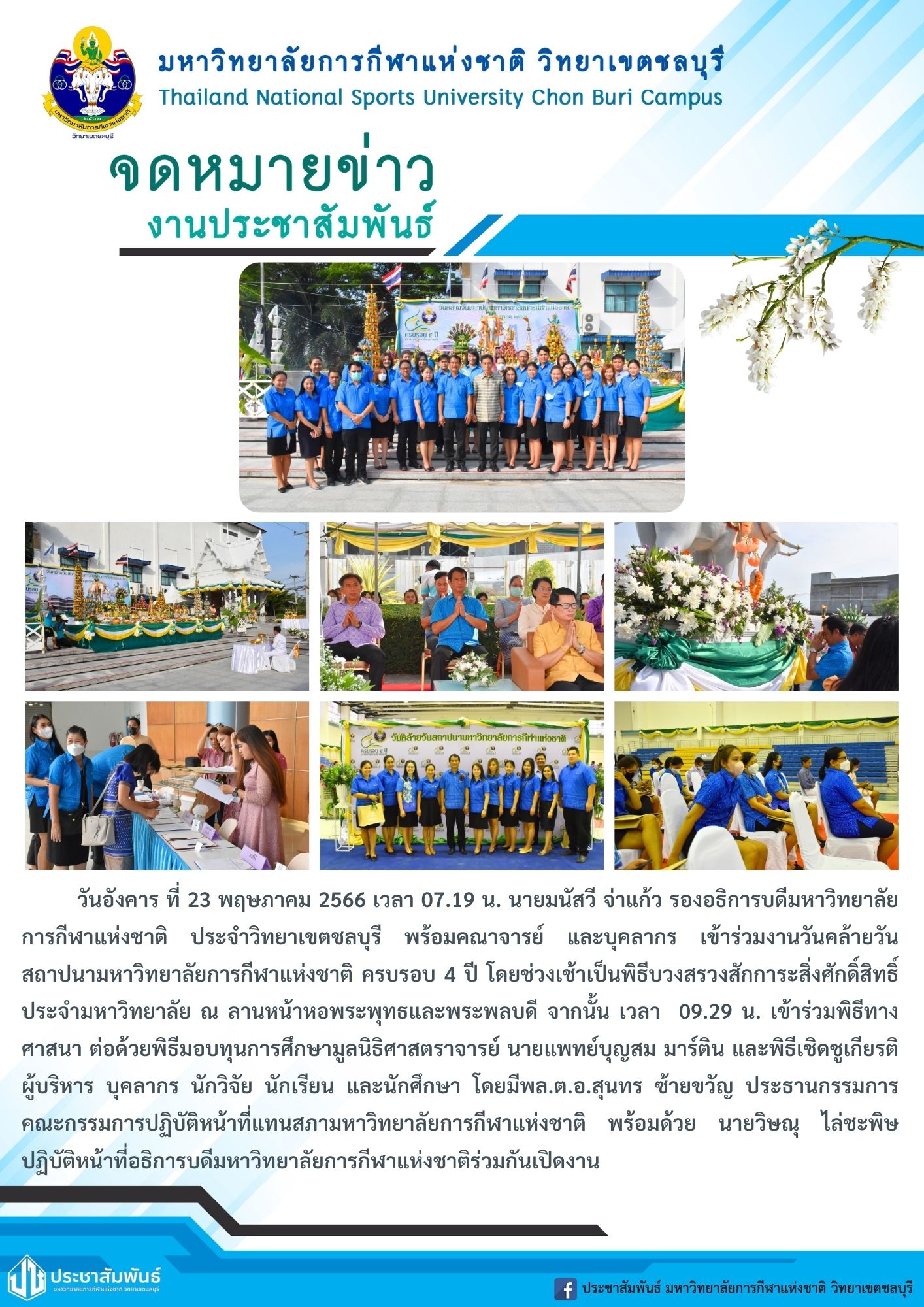 นายมนัสวี จ่าแก้ว รองอธิการบดีมหาวิทยาลัยการกีฬาแห่งชาติ ประจำวิทยาเขตชลบุรี พร้อมคณาจารย์ และบุคลากร เข้าร่วมงานวันคล้ายวันสถาปนามหาวิทยาลัยการกีฬาแห่งชาติ ครบรอบ 4 ปี