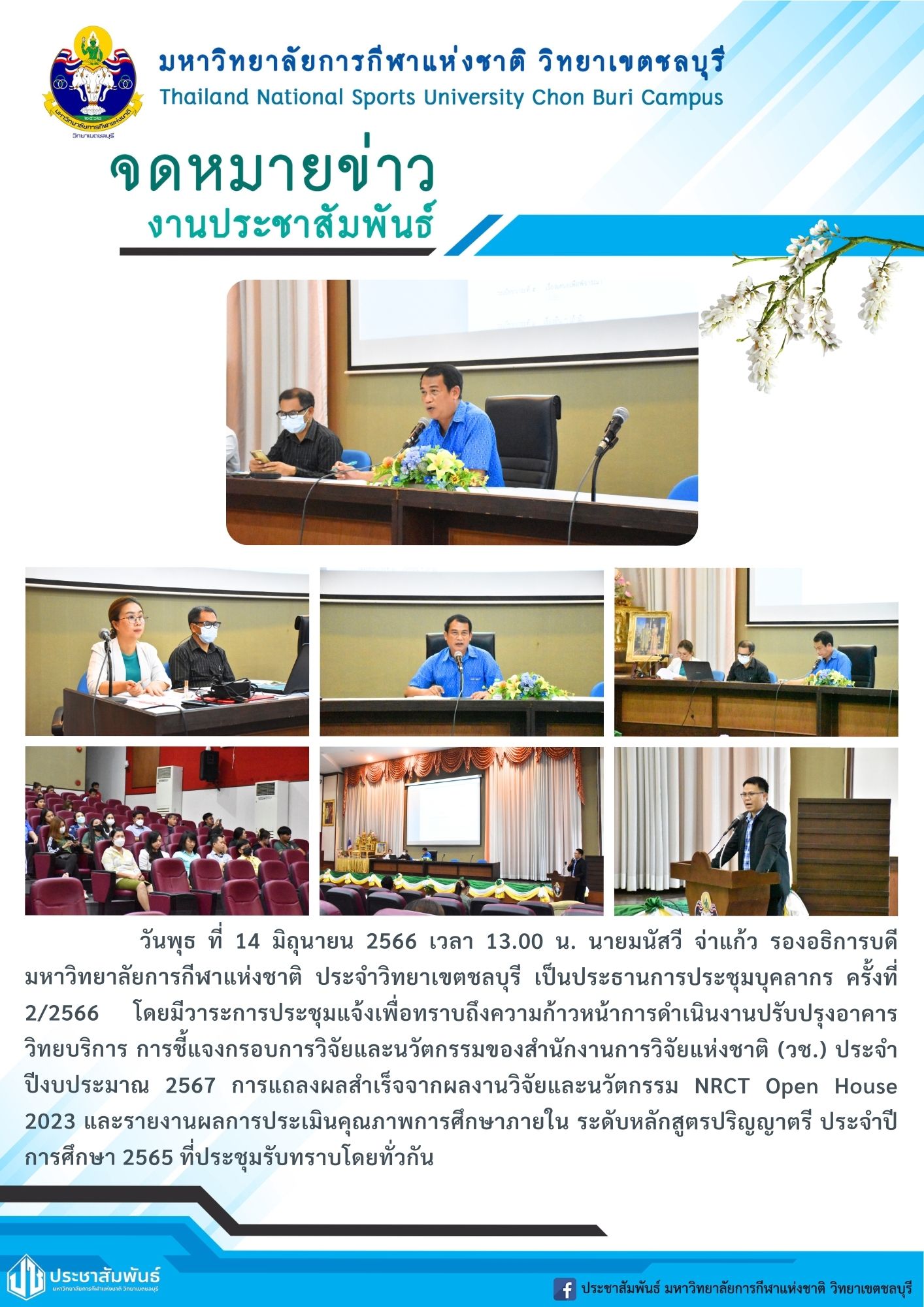 นายมนัสวี จ่าแก้ว รองอธิการบดีมหาวิทยาลัยการกีฬาแห่งชาติ ประจำวิทยาเขตชลบุรี เป็นประธานการประชุมบุคลากร ครั้งที่ 2/2566