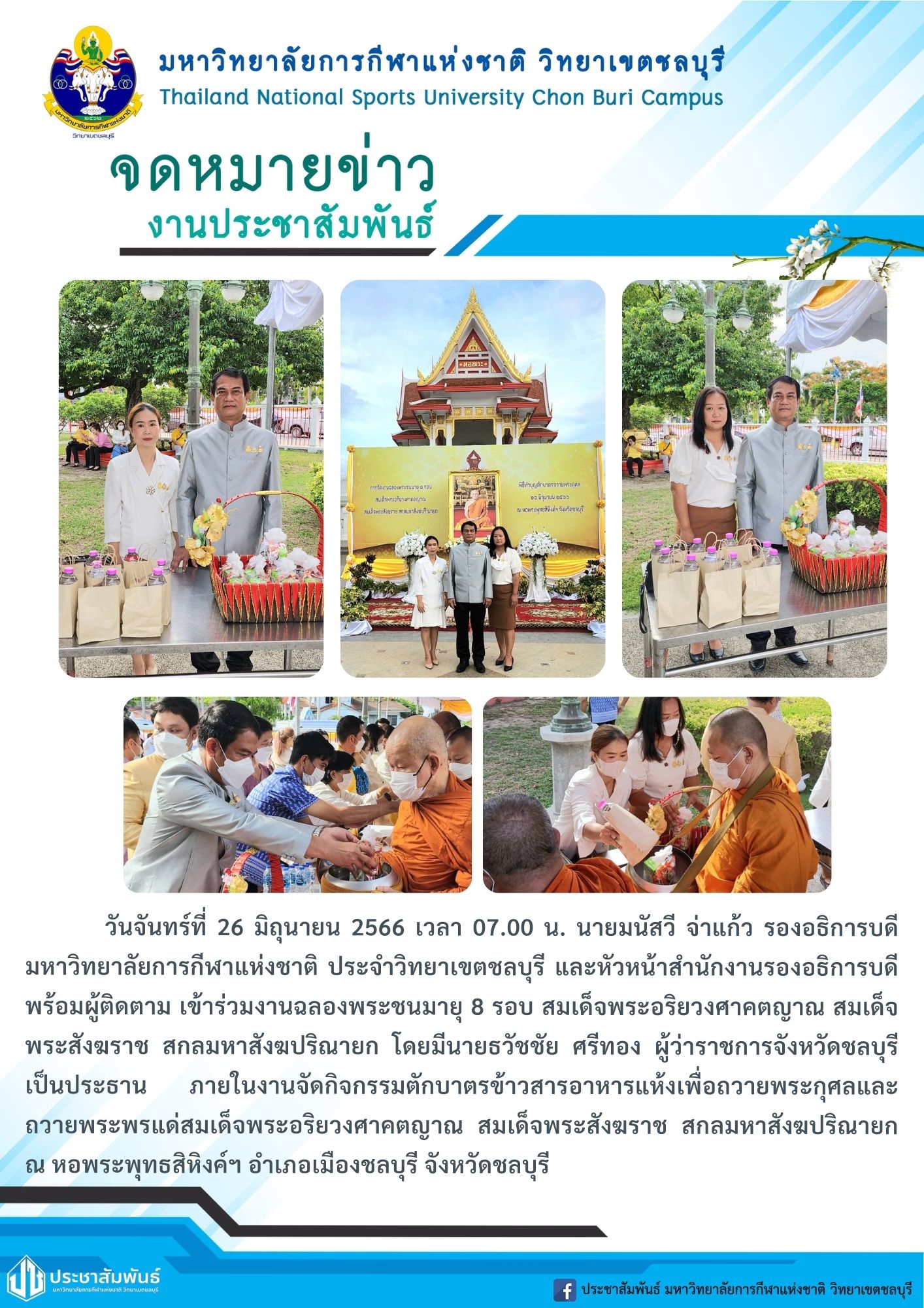 นายมนัสวี จ่าแก้ว รองอธิการบดีมหาวิทยาลัยการกีฬาแห่งชาติ ประจำวิทยาเขตชลบุรี และหัวหน้าสำนักงานรองอธิการบดี เข้าร่วมงานฉลองพระชนมายุ 8 รอบ สมเด็จพระอริยวงศาคตญาณ สมเด็จพระสังฆราช สกลมหาสังฆปริณายก