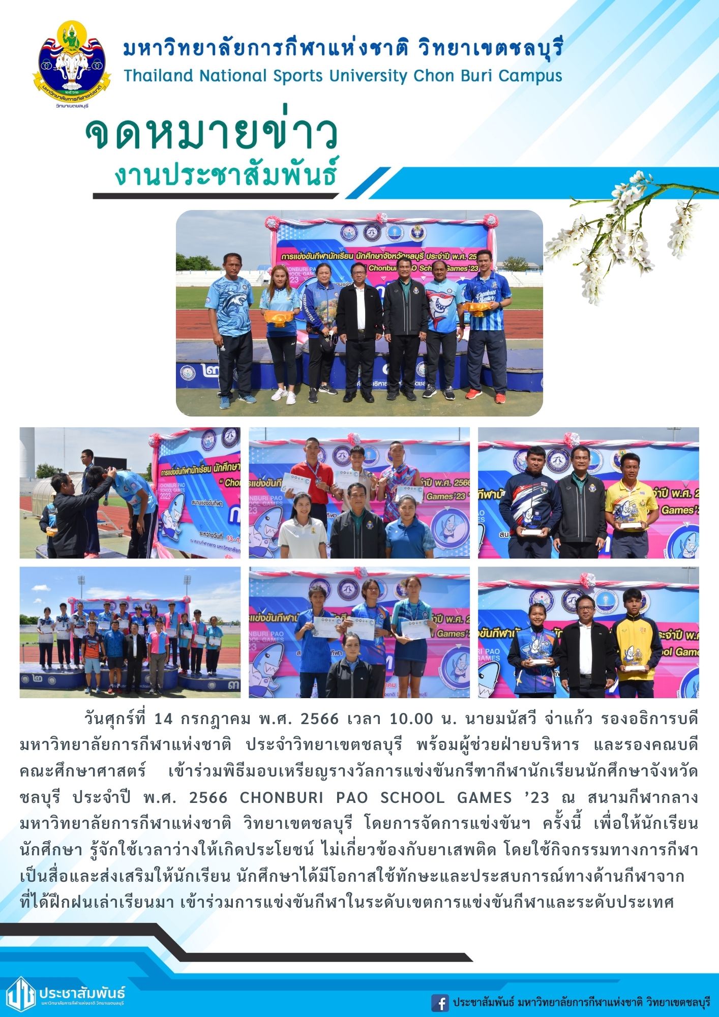 พิธีมอบเหรียญรางวัลการแข่งขันกรีฑากีฬานักเรียน จังหวัดชลบุรี ประจำปี 2566