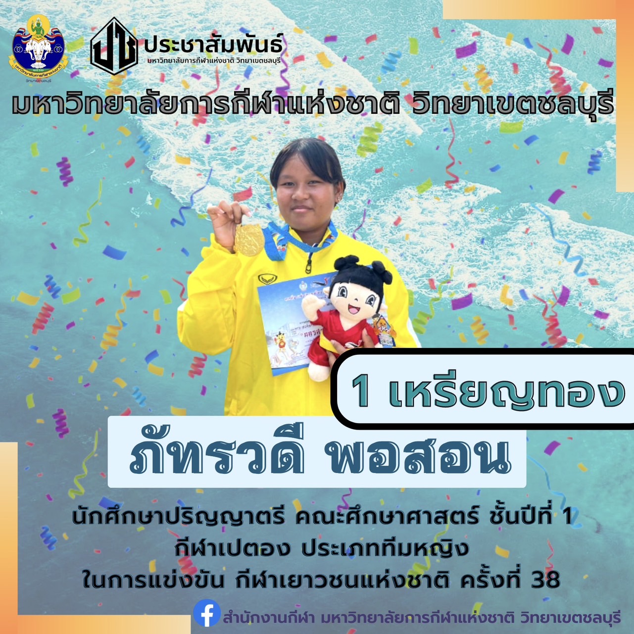 กับ "นางสาวภัทรวดี พอสอน" นักศึกษาปริญญาตรี คณะศึกษาศาสตร์ ชั้นปีที่ 1 มหาวิทยาลัยการกีฬาแห่งชาติ วิทยาเขตชลบุรี