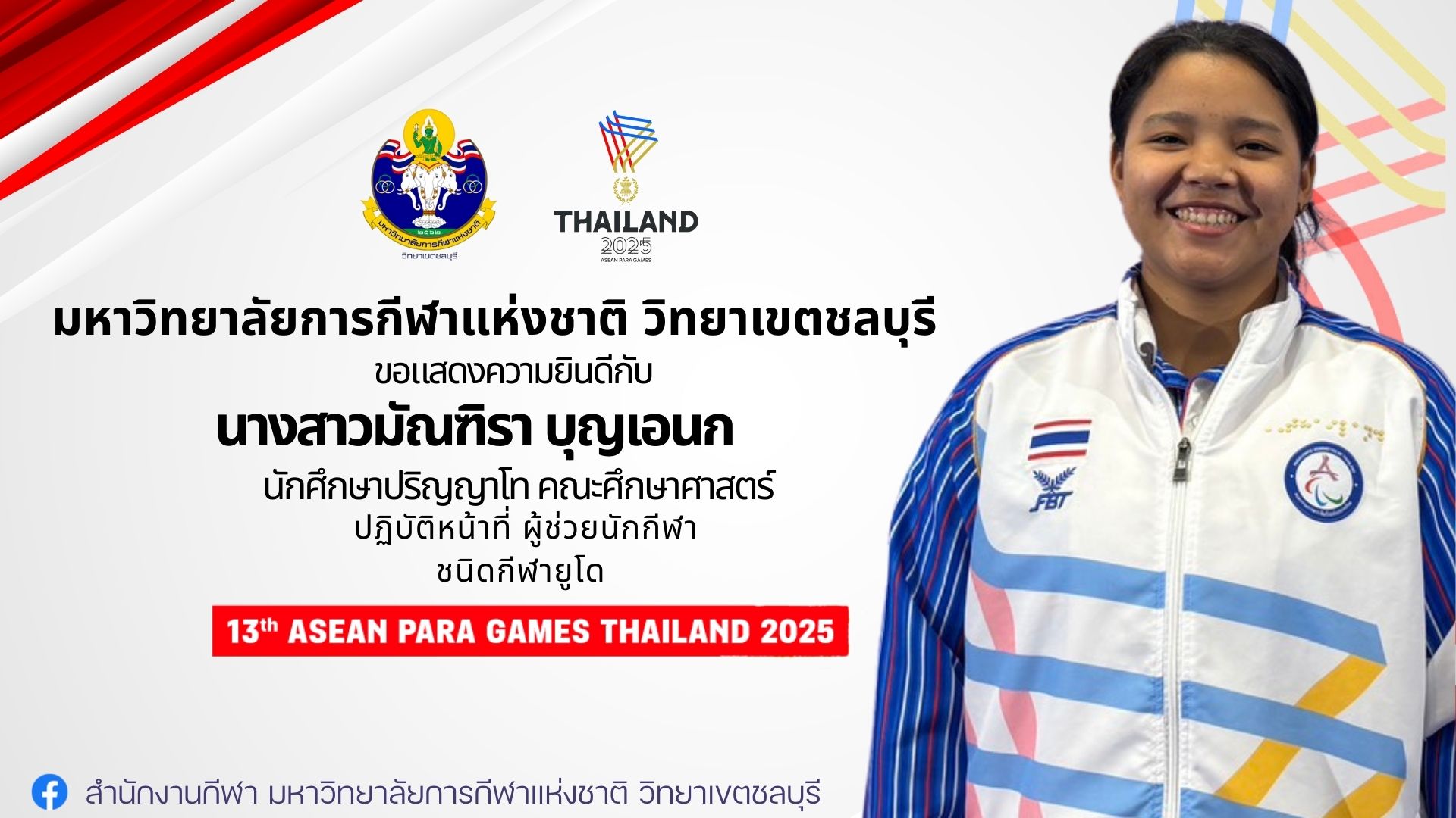 ![]() | นางสาวมัณฑิรา บุญเอนก นักศึกษาปริญญาโท คณะศึกษาศาสตร์ ปฏิบัติหน้าที่ ผู้ช่วยนักกีฬา ชนิดกีฬายูโด |