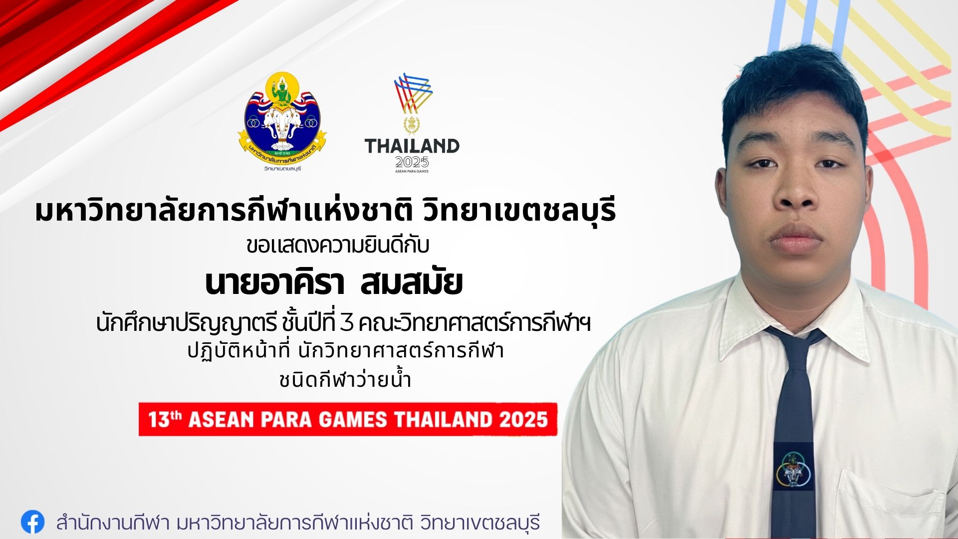 ![]() | นายอาคิรา สมสมัย นักศึกษาปริญญาตรี คณะวิทยาศาสตร์การกีฬาฯ ปฏิบัติหน้าที่ นักวิทยาศาสตร์การกีฬา ชนิดกีฬาว่ายน้ำ |