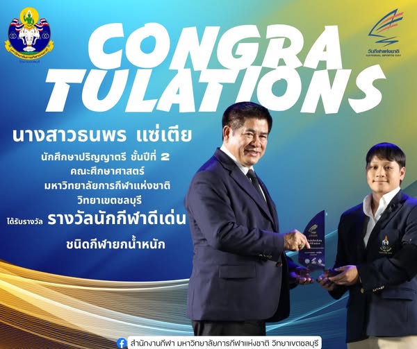 ![]() | นางสาวธนพร แซ่เตีย นักศึกษาปริญญาตรี คณะศึกษาศาสตร์ ได้รับรางวัล รางวัลนักกีฬาดีเด่น ชนิดกีฬายกน้ำหนัก |